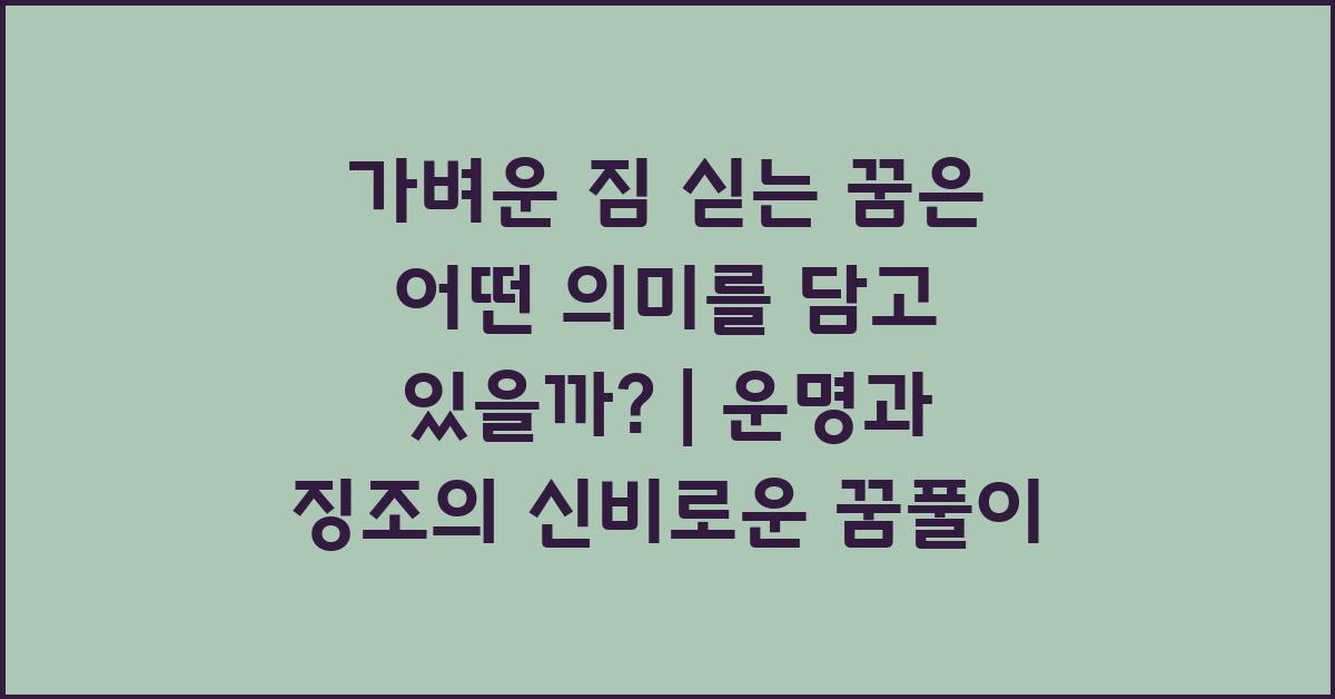💡 가벼운 짐의 꿈, 그 의미를 풀어내다