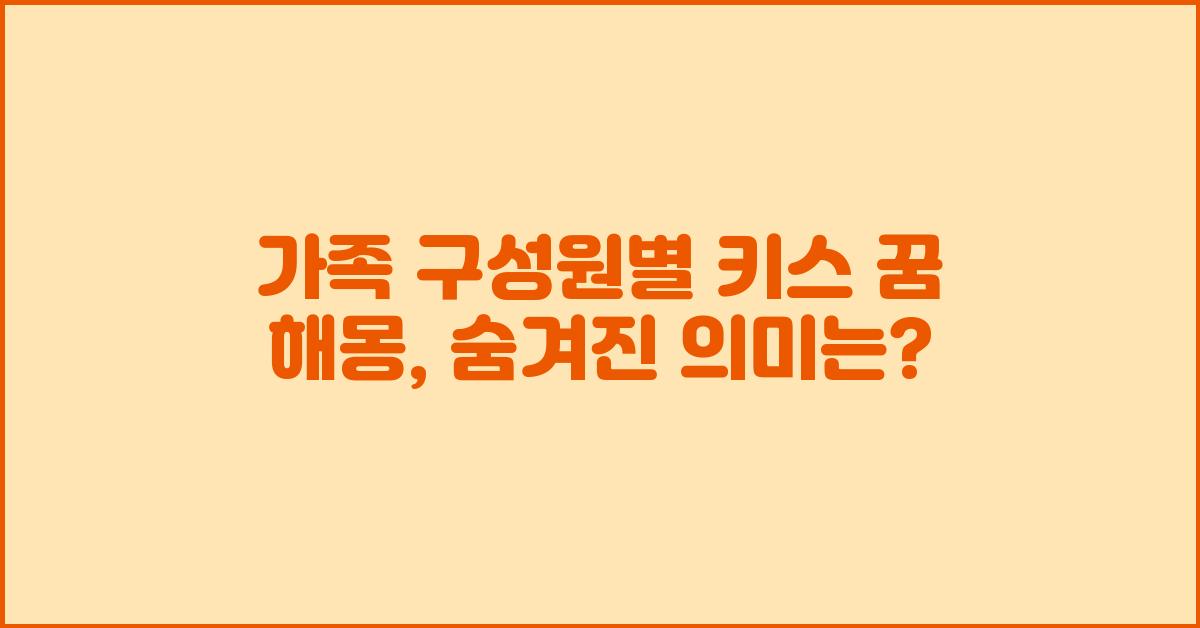 3. 꿈 해몽은 어떻게 해야 하나요? 개인의 경험과 상황을 반영하여 해석하는 것이 중요합니다. 가족 구성원별 키스 꿈 해몽 | 꿈해몽 꿈풀이 꿈해석 꿈의미를 참고하세요.