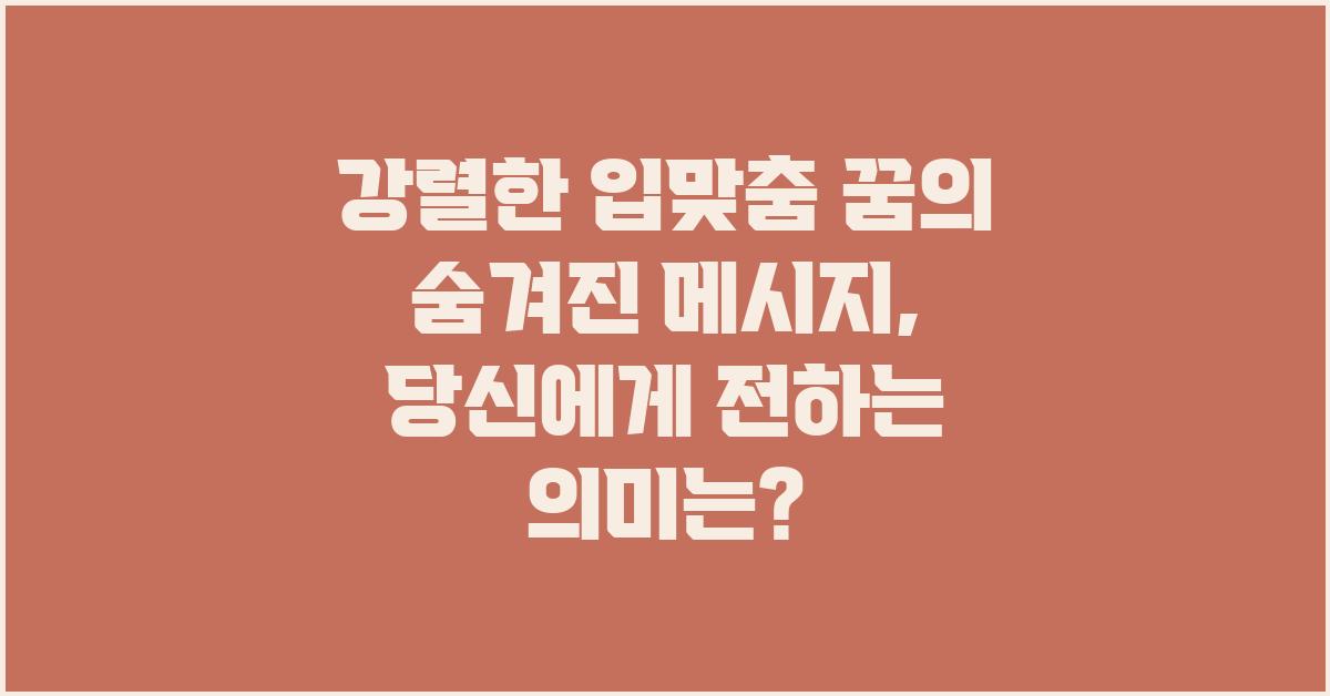 이처럼 강렬한 입맞춤 꿈의 숨겨진 메시지 | 꿈해몽 꿈풀이 꿈해석 꿈의미를 통해 여러분의 내면을 들여다보고, 삶의 중요한 변화를 감지할 수 있습니다. 꿈에 대한 깊은 이해를 바탕으로 미래를 준비하는 여러분이 되기를 바랍니다!