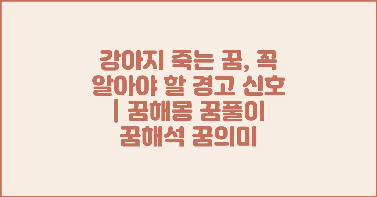 💔 강아지 죽는 꿈이 주는 경고 신호