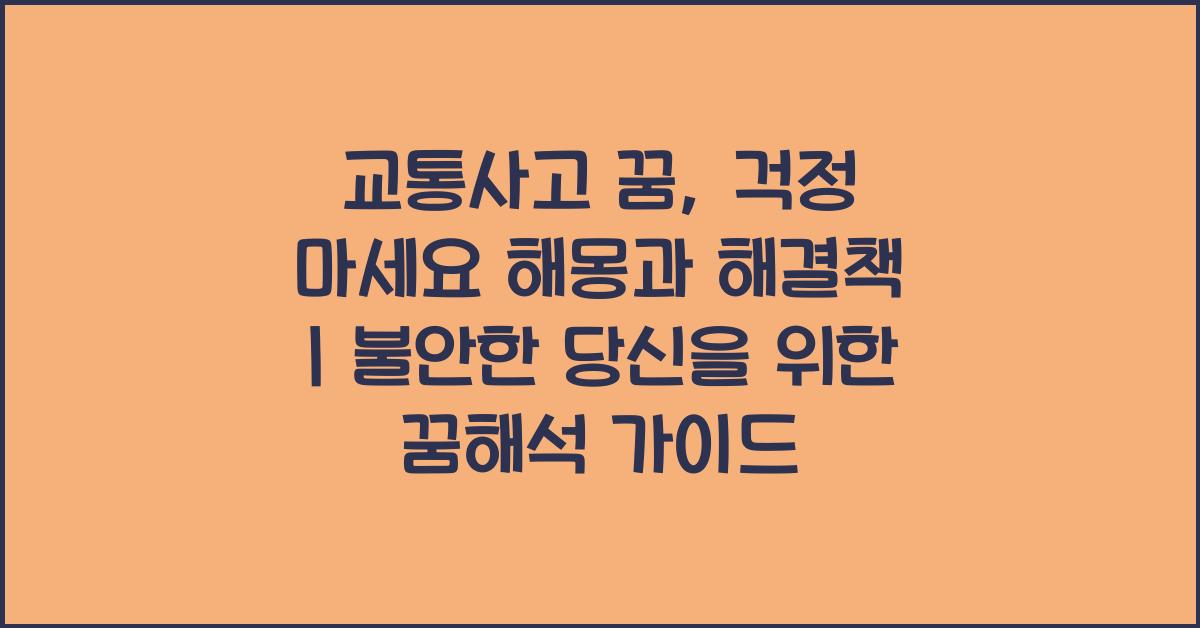 교통사고 꿈을 꾼 후 불안한 마음이 드는 것은 아주 자연스러운 일입니다. 많은 사람들이 이런 꿈을 꾸고 나면 불편한 감정을 느끼곤 합니다. 꿈은 일종의 무의식적인 메시지로, 우리 내면의 감정과 상황을 반영합니다. 교통사고 꿈은 종종 우리 삶에서 겪고 있는 불안, 스트레스, 혹은 통제 상실의 상징으로 해석될 수 있습니다. 그런 의미에서 교통사고 꿈, 걱정 마세요! 해몽과 해결책을 통해 여러분의 고민을 함께 해결해 보도록 하겠습니다.