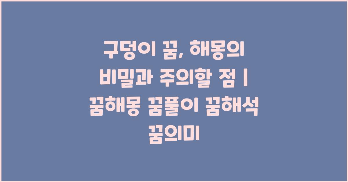 💡 구덩이 꿈을 해석하는 방법