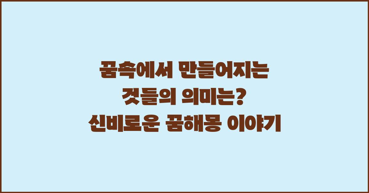 꿈속에서 만들어지는 것들의 의미는? | 꿈해몽 꿈풀이 꿈해석 꿈의미는 너무나도 다양하고 개인의 경험에 따라 달라질 수 있습니다. 꿈은 우리에게 많은 것을 이야기하고 있습니다. 그러니 꿈을 두려워하기보다는 그 속에서 숨겨진 메시지를 찾아보아요!