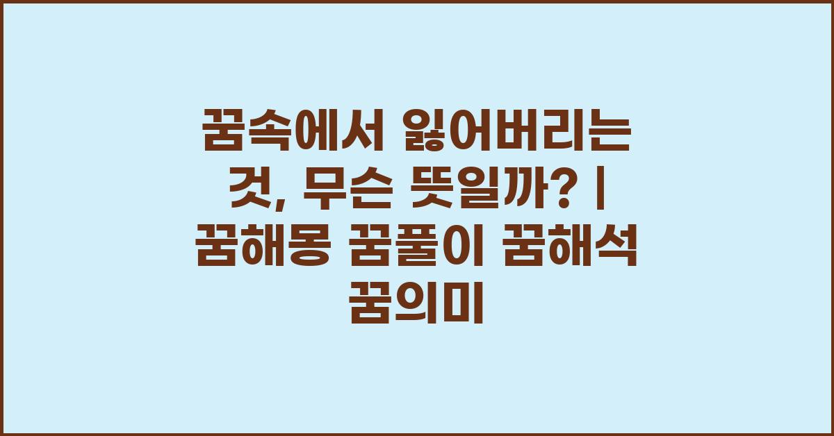 꿈속에서 잃어버리는 것, 무엇을 의미할까? | 꿈해몽 꿈풀이 꿈해석 꿈의미는 결국 우리 자신의 성장을 위한 중요한 도구입니다. 꿈은 단순한 환상이 아니라, 우리의 감정과 생각을 제대로 반영하는 거울입니다. 따라서 이 꿈을 통해 우리는 상실감을 느끼고, 그것이 나에게 무엇을 의미하는지 깊이 고민해 봐야 합니다.