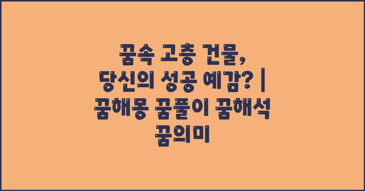 꿈속 고층 건물, 성공과 번영의 상징? | 꿈해몽 꿈풀이 꿈해석 꿈의미는 다양한 방식으로 해석될 수 있습니다. 어떤 사람에게는 두려움의 상징일 수 있는 반면, 다른 사람에게는 자신감을 북돋아주는 긍정적인 요소가 될 수 있습니다. 이처럼 꿈은 개별적인 것이기 때문에 그 의미는 개인의 경험과 감정에 따라 달라질 수 있습니다.
