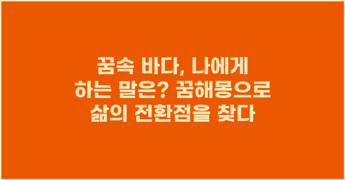 그렇다면 꿈속 바다를 통해 어떻게 삶의 전환점을 찾아낼 수 있을까요? 단순한 꿈 해몽이 아니라, 현실에서의 나의 삶을 돌아보는 기회입니다. 꿈속 바다가 전해주는 메시지를 이제는 조금 더 적극적으로 해석해보세요. 꿈속 바다, 나에게 하는 말은? 내가 해야 할 일이 무엇인지 말해주고 있습니다!