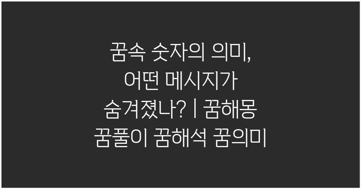 이렇게 10일 동안 꿈속에서 같은 숫자를 본다면, 그 숫자는 지금의 당신이 처한 상황에 대한 경고 혹은 조언일 수 있습니다. 꿈속 숫자의 의미, 당신의 꿈은 무엇을 말하는가? | 꿈해몽 꿈풀이 꿈해석 꿈의미는 이러한 패턴을 통해 개인의 현재 상태를 반영하고 있는 것 같아 매우 흥미롭습니다.