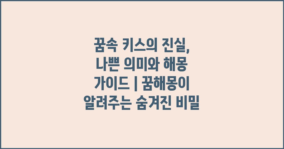 꿈에서 키스하는 장면은 많은 이들에게 로맨틱한 상징으로 여겨질 수 있습니다. 하지만 꿈의 의미는 매우 복잡하고 개인의 상황에 따라 달라질 수 있습니다. 꿈속 키스의 진실: 나쁜 의미와 해몽 가이드 | 꿈해몽 꿈풀이 꿈해석 꿈의미를 이해하기 위해선 기본적인 상징에 대한 탐구가 필요합니다. 키스는 일반적으로 사랑, 친밀감, 이해 등의 긍정적인 의미를 가지고 있지만, 그 이면에는 여러 다른 내포된 의미가 있을 수 있습니다.
