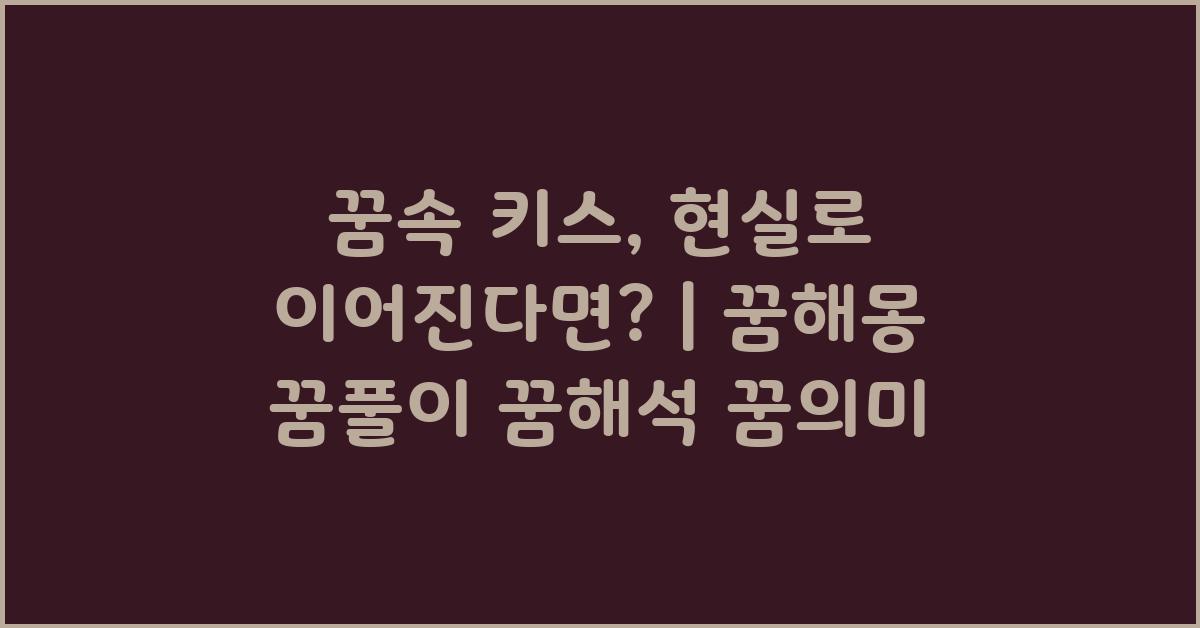 꿈속 키스의 진실, 나쁜 의미와 해몽 가이드 | 꿈해몽이 알려주는 숨겨진 비밀