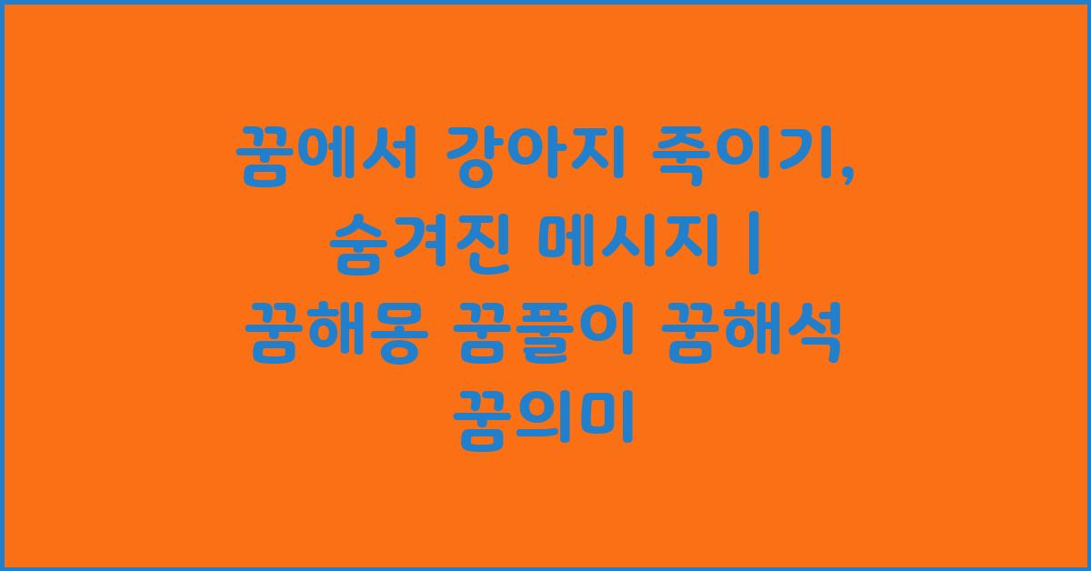 꿈은 종종 우리의 무의식적 생각과 감정을 반영합니다. 특히, 꿈에서 강아지를 죽이는 장면은 혐오스런 느낌을 줄 수 있지만, 이는 단순한 공포가 아닙니다. 꿈에서 강아지 죽이기, 꿈의 메시지 | 꿈해몽 꿈풀이 꿈해석 꿈의미에 대해서 생각해보면, 이 꿈이 당신의 감정이나 관계에 대한 중요한 신호일 수 있습니다.