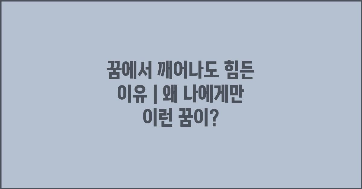 여러분, 꿈에서 깨어나면 종종 느끼는 그 불편한 감정, 알고 계시나요? 꿈에서의 경험이 너무 생생하거나 감정적으로 강렬했기 때문에 현실로 돌아오는 것이 쉽지 않다는 것을 말입니다. 현실은 무겁고, 꿈은 자유롭기 때문에 우리는 그 간극에서 힘들어하는 것이죠. 꿈에서 깨어나도 힘든 이유는 단순히 꿈의 내용 때문만이 아닙니다. 우리의 심리적 상태와 깊은 연관이 있습니다.