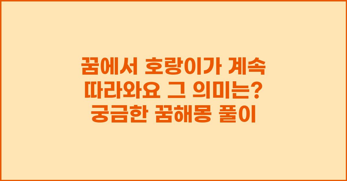 꿈에서 호랑이가 계속 따라오는 상황은 단순한 두려움 이상의 의미를 가집니다. 여러분이 겪고 있는 감정이나 문제를 돌아볼 수 있는 좋은 기회일 것입니다. 꿈해몽을 통해 자신에 대해 더 깊이 이해하고, 감정의 흐름을 조절하는 데 도움이 되는 지혜를 얻길 바랍니다. 여러분은 이런 형태의 꿈이 꿈꾸는 것 외에도 어떤 의미를 지니고 있다고 느끼시나요?