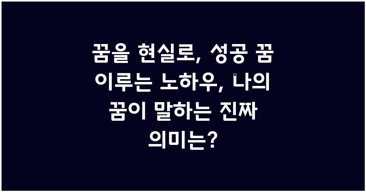 꿈은 우리의 무의식이 보내는 메시지입니다. 사람들은 꿈을 통해 자신이 놓치고 있는 것, 또는 이루고 싶은 것에 대한 깊은 통찰을 얻을 수 있습니다. 꿈의 의미를 이해하는 과정은 단순히 재미있는 오락을 넘어서, 삶의 방향을 설정하는 데 큰 도움이 됩니다. 꿈을 현실로 만드는 데 있어 가장 먼저 필요한 것은 바로 이러한 꿈의 의미를 발견하는 것입니다.