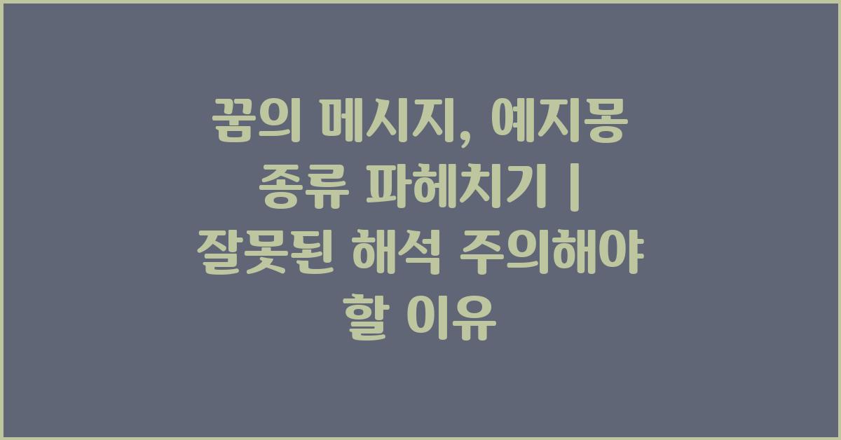 꿈을 정확히 해석하기 위해서는 자신의 감정 상태와 현재 상황을 점검하는 것이 좋습니다. 꿈의 메시지, 예지몽 종류 파헤치기 | 꿈해몽 꿈풀이 꿈해석 꿈의미 처럼 잘못된 해석을 피하기 위해 주의 깊은 자기 성찰이 필요합니다. 꿈의 정확한 해석은 단순히 상징을 읽는 것 이상의 과정이죠. 가장 중요한 것은 여러분의 직관과 감정입니다. 어떤 꿈이 감정적으로 여러분에게 다가온다면, 그것이 현실에 영향을 줄 가능성이 큽니다.