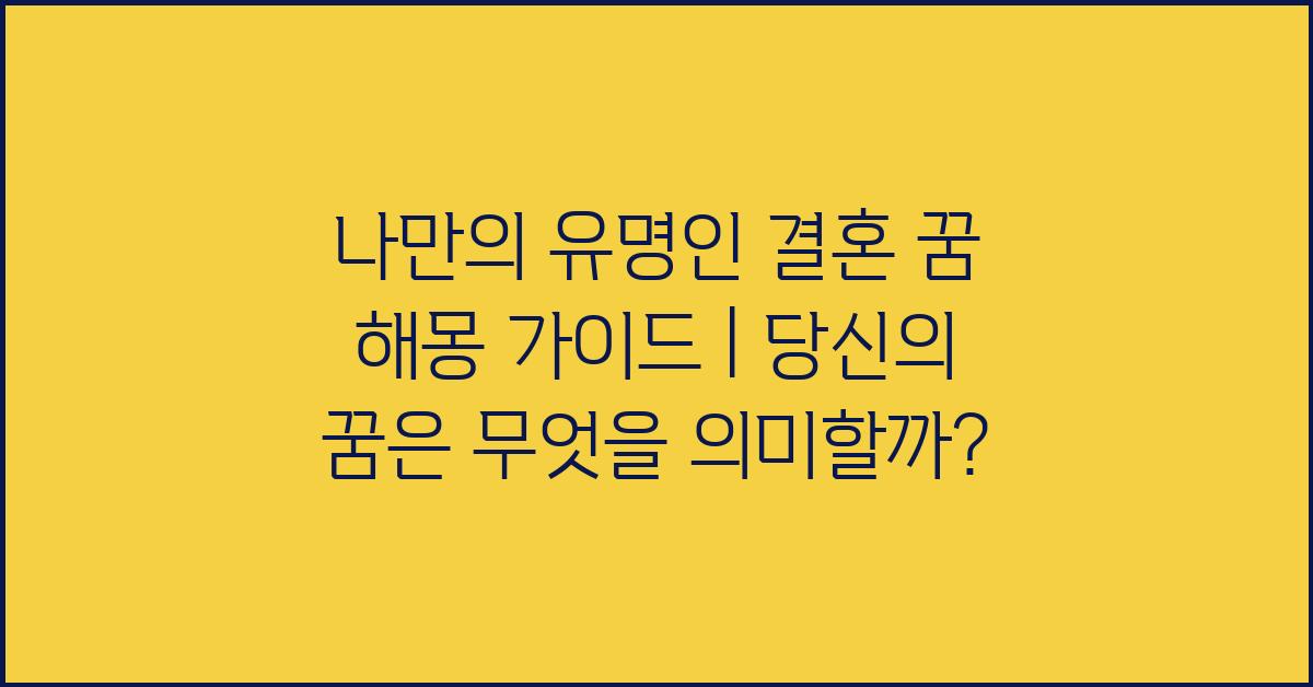 📌 나만의 유명인 결혼 꿈 해몽 가이드