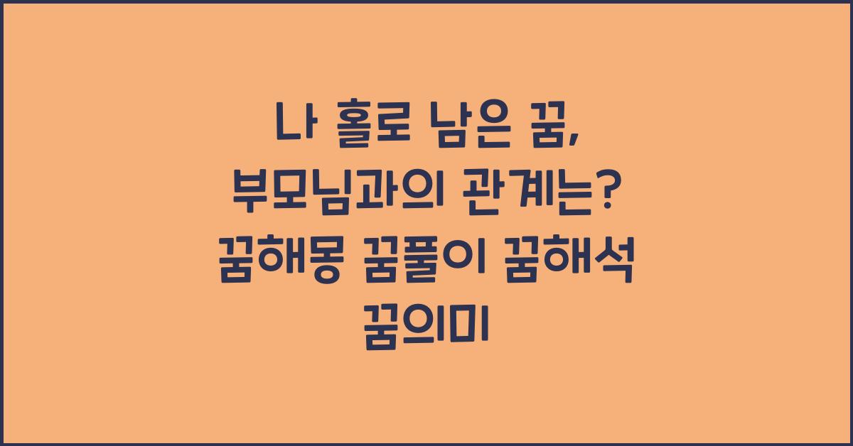 나 홀로 남은 꿈은 고립감이나 불안을 나타내며 주로 부모님과의 관계와 연결될 수 있습니다. 이 꿈을 통해 부모님과의 갈등을 점검하고 개선할 수 있는 기회를 제공합니다.