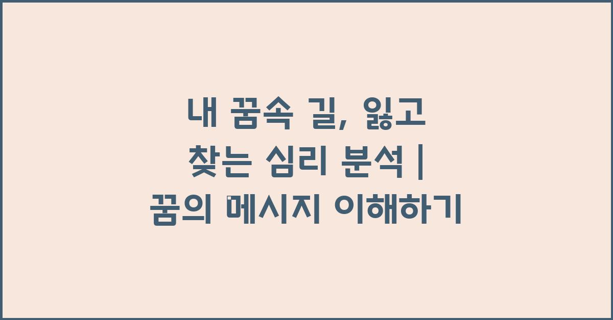 처음 꿈의 해석을 시작할 때, 여러분의 경험과 감정을 떠올려보세요. 제 경험상, 꿈은 언제나 저의 생활과 감정의 반영이었습니다. 한번은 꿈속에서 친구와 화해하는 장면을 보았고, 그것이 제 내면에서 갈등을 겪고 있었던 시기와 연결되었음을 느꼈습니다. 꿈은 정말로 여러분의 불안이나 고민에 귀 기울이는 도구가 될 수 있습니다. 내 꿈속 길, 잃고 찾는 심리 분석 | 꿈해몽 꿈풀이 꿈해석 꿈의미를 통해 자신의 감정을 탐구해보세요.