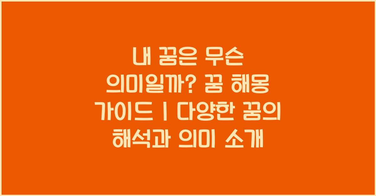 꿈은 우리의 무의식이 드러나는 신비로운 경험입니다. 이번 포스트에서는 다양한 꿈과 그 의미에 대해 알아보며, 내 꿈은 무슨 의미일까? 꿈 해몽 가이드 제공하겠습니다.
