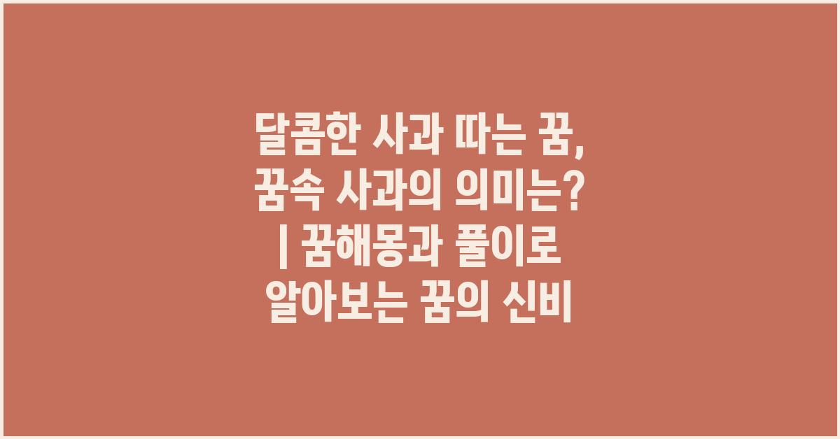 🧠 달콤한 사과의 꿈이 우리에게 주는 교훈