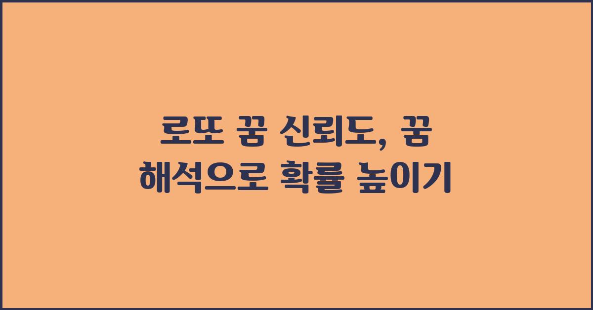 로또에 대한 꿈을 꾼다는 것은 많은 사람들에게 특별한 의미로 다가옵니다. 흔히 '로또 꿈 신뢰도'라는 말을 듣곤 하는데, 이는 꿈이 미래에 대한 어떤 예감을 주는 것일까요? 꿈속에서 로또 번호가 나타나면 정말로 당첨될 가능성이 있다는 믿음이 있지만, 그러한 믿음은 어디서 오는 것일까요?