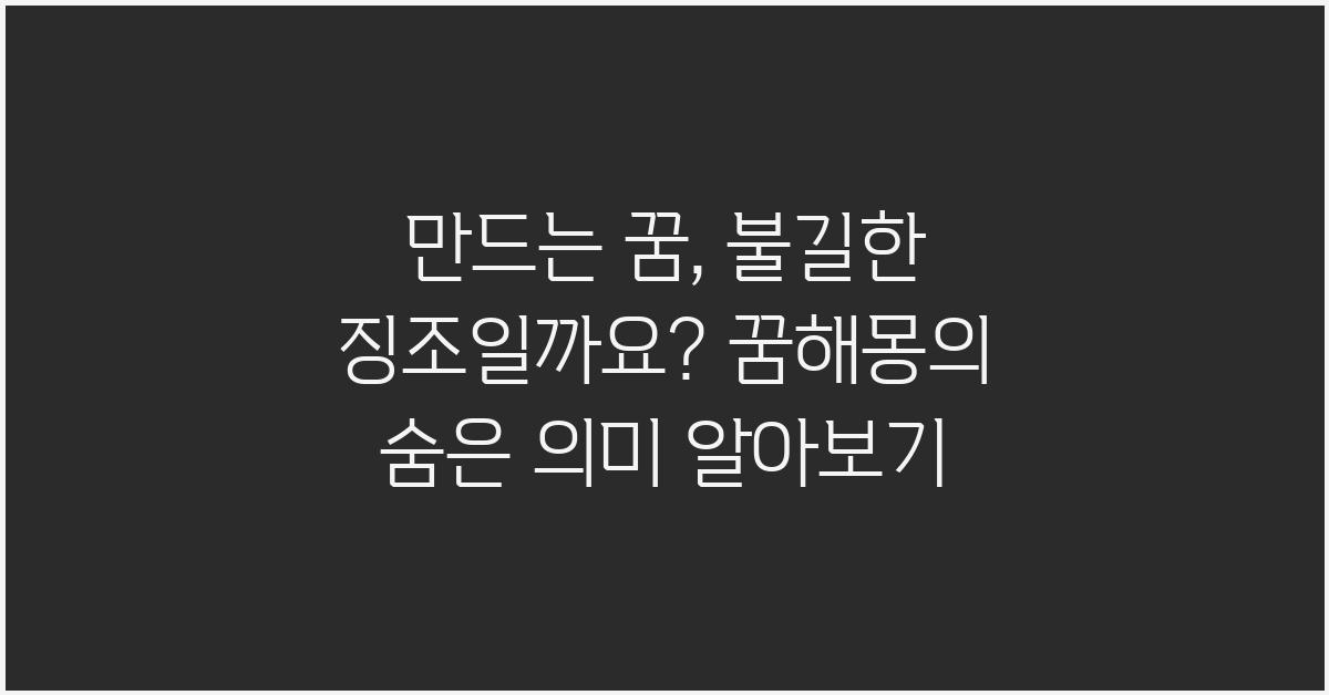 꿈은 넋을 잃게 만드는 신비한 세계입니다. 특히 만드는 꿈, 불길한 징조일까요? 꿈해몽 꿈풀이 꿈해석 꿈의미와 같은 주제는 많은 이들의 궁금증을 자아냅니다. 꿈속에서 무엇인가를 만드는 경험은 어떤 의미를 가질까요? 때로는 신비로운 것 같고, 때로는 불길한 느낌도 드는 것이 사실입니다. 이러한 꿈의 숨은 의미를 이해하기 위해서는 꿈의 전반적인 상징성을 살펴보는 것이 필요합니다.