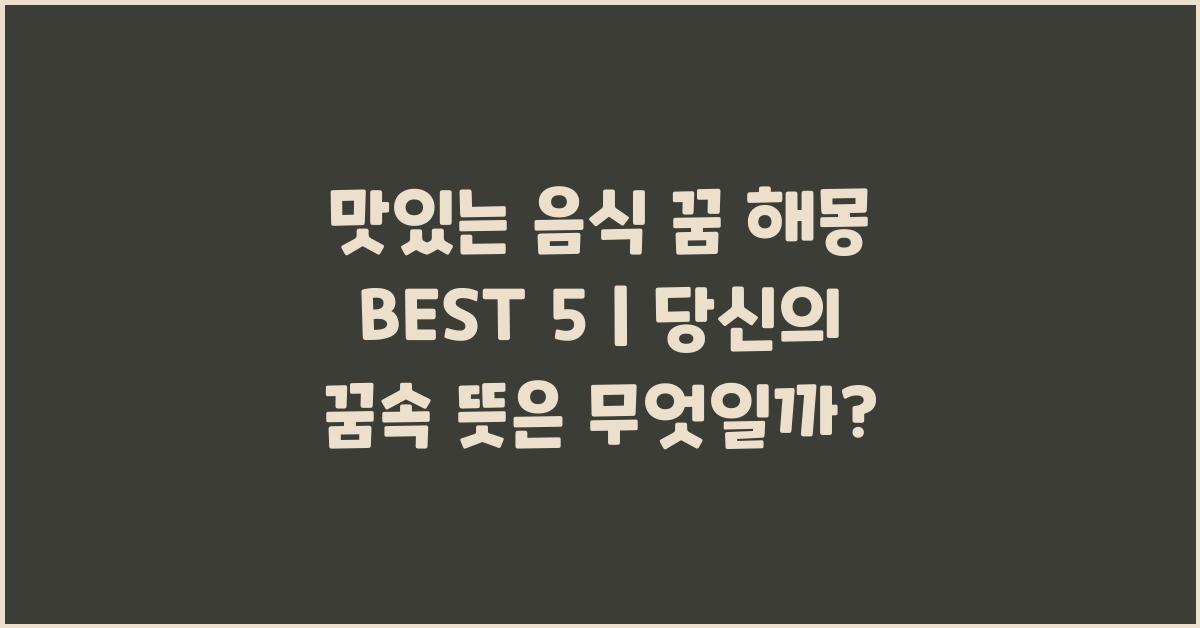 맛있는 음식 꿈 해몽 BEST 5 | 꿈해몽 꿈풀이 꿈해석 꿈의미를 통해 우리는 단순히 음식을 넘어서는 깊은 메시지를 받아들일 수 있습니다. 여러분의 꿈속에 숨겨진 의미를 잘 새기고, 그 의미를 통해 더 나은 미래로 나아가길 바랍니다. 꿈은 여러분의 의식뿐 아니라 무의식의 분수령입니다.