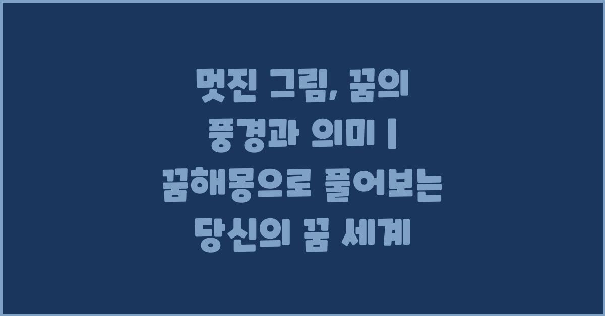 꿈의 내용이 단순한 환상이 아닐 수 있음을 인정하는 것이 중요합니다. 감정적 충격, 스트레스, 경험 등이 꿈에 투영되기 때문이죠. 멋진 그림, 꿈의 풍경과 의미 | 꿈해몽 꿈풀이는 이러한 꿈을 통해 여러분의 감정을 더 깊이 이해하는 데 도움을 줄 수 있습니다. 꿈을 통해 발견한 통찰이 여러분의 현실에 긍정적인 변화를 가져올 수 있다는 것을 잊지 마세요.
