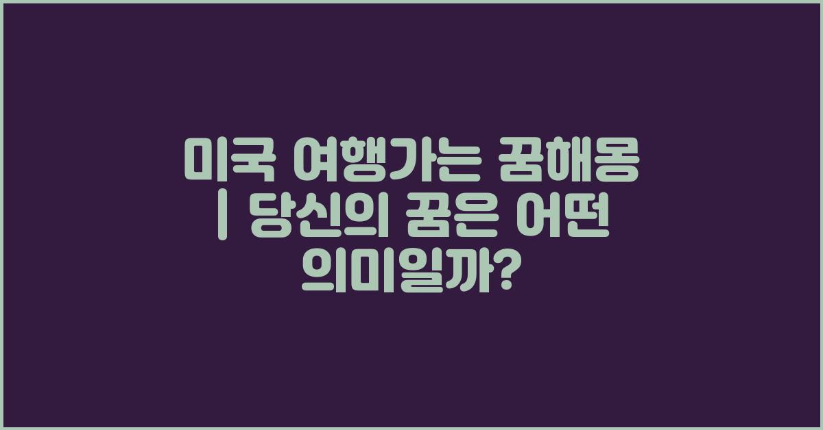 🔑 꿈해몽의 마무리: 미국 여행이 주는 메시지