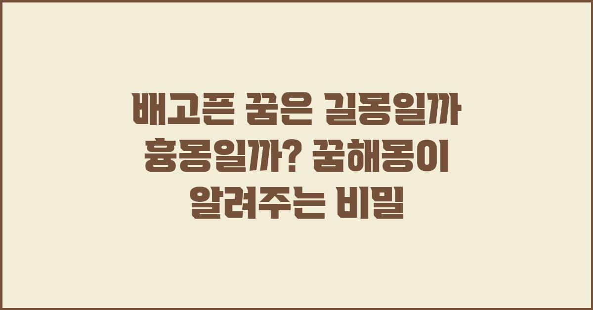 배고픈 꿈은 상황에 따라 길몽이 될 수도, 흉몽이 될 수도 있습니다. 꿈의 맥락과 개인의 감정이 중요한 요소입니다.