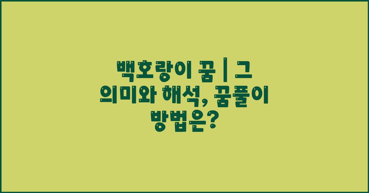 여러분도 백호랑이 꿈 | 꿈해몽 꿈풀이 꿈해석 꿈의미를 통해 여러분의 내면을 탐구해보시길 바랍니다. 이는 상징적인 해석을 넘어, 삶에서의 소중한 교훈으로 이어질 수 있습니다.