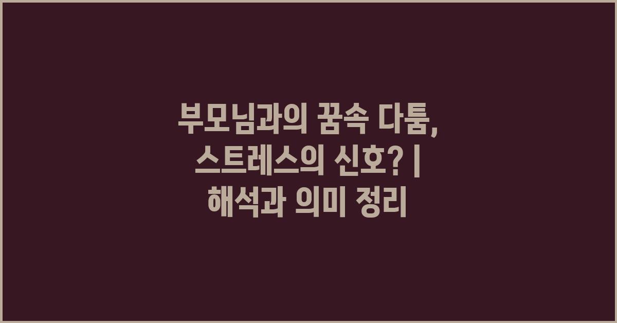 꿈속의 다툼은 때로는 사랑과 이해 부족을 상징하기도 합니다. 부모님과의 관계가 복잡하거나 긴장감이 느껴진다면, 이는 꿈속에서 자주 나타날 수 있습니다. 이런 측면에서 꿈은 무의식의 메시지를 전달하는 수단으로 작용할 수 있습니다. "부모님과의 꿈속 다툼, 스트레스의 신호? | 꿈해몽 꿈풀이 꿈해석 꿈의미"의 주제를 통해 우리의 내면을 탐구할 필요가 있습니다.