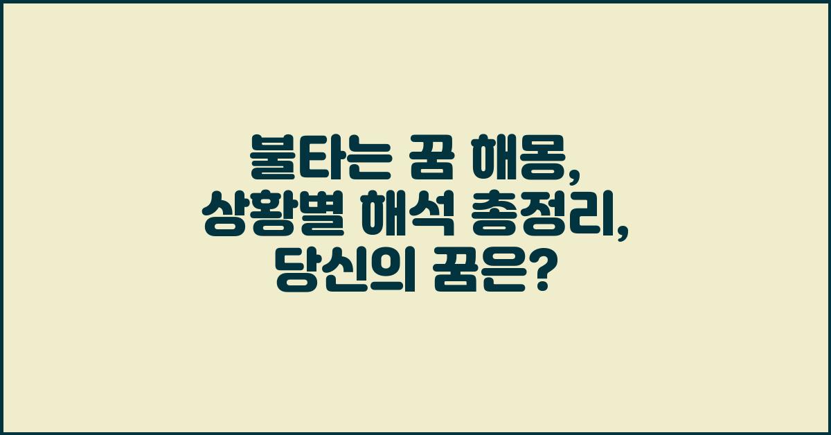 불타는 꿈 해몽: 상황별 해석 총정리 | 꿈해몽 꿈풀이 꿈해석 꿈의미를 통해 여러분이 꿈의 의미를 잘 이해하고, 이를 통해 발전할 수 있기를 바랍니다. 꿈은 우리에게 여러 메시지를 전달하며, 이를 통해 자기 자신을 더욱 잘 알게 되는 기회를 제공하니까요!