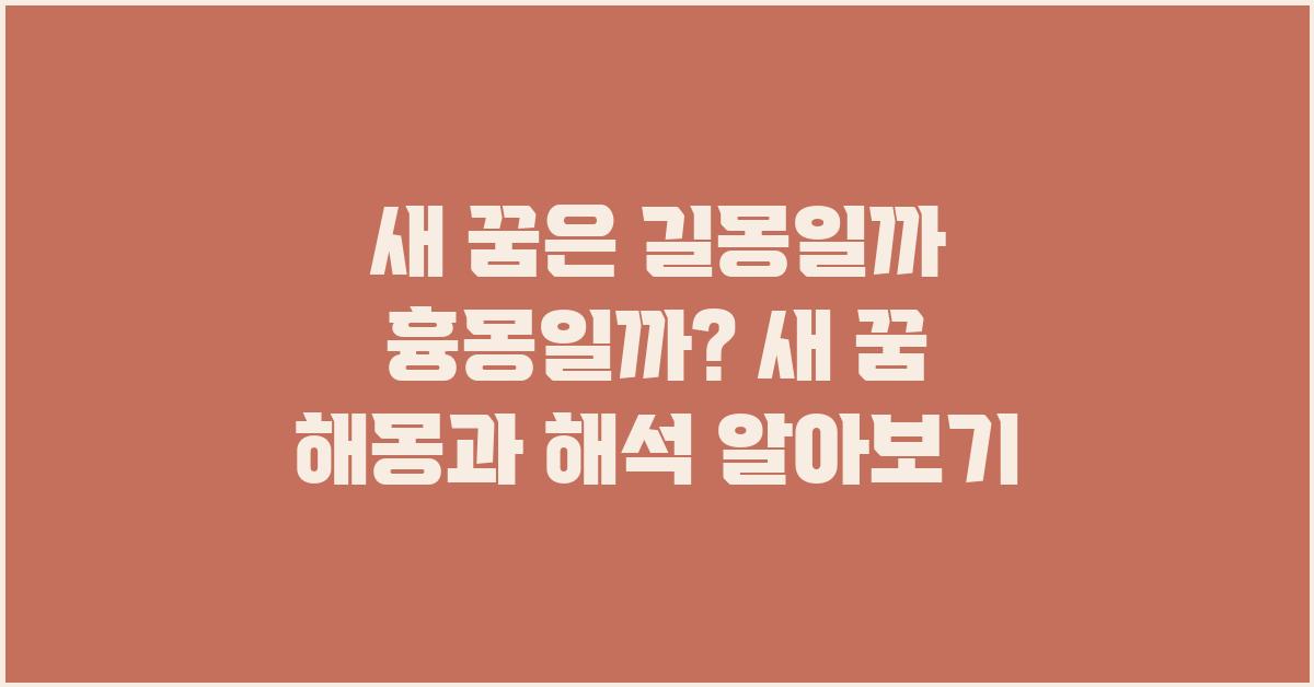 꿈은 우리의 무의식이 표현되는 특별한 순간입니다. 특히 새 꿈은 매우 다양한 해석을 자아낼 수 있습니다. 그러나 대부분의 사람들은 새 꿈이 길몽일지 흉몽인지에 대해 고민하게 됩니다. 내 경험상, 새 꿈은 흔히 긍정적인 의미를 가지고 있지만, 상황에 따라서 다르게 해석될 수 있습니다. 꿈속에서 새가 날아오르는 모습을 본다면, 이는 기대하는 방향으로 나아가는 것을 암시할 수 있습니다.