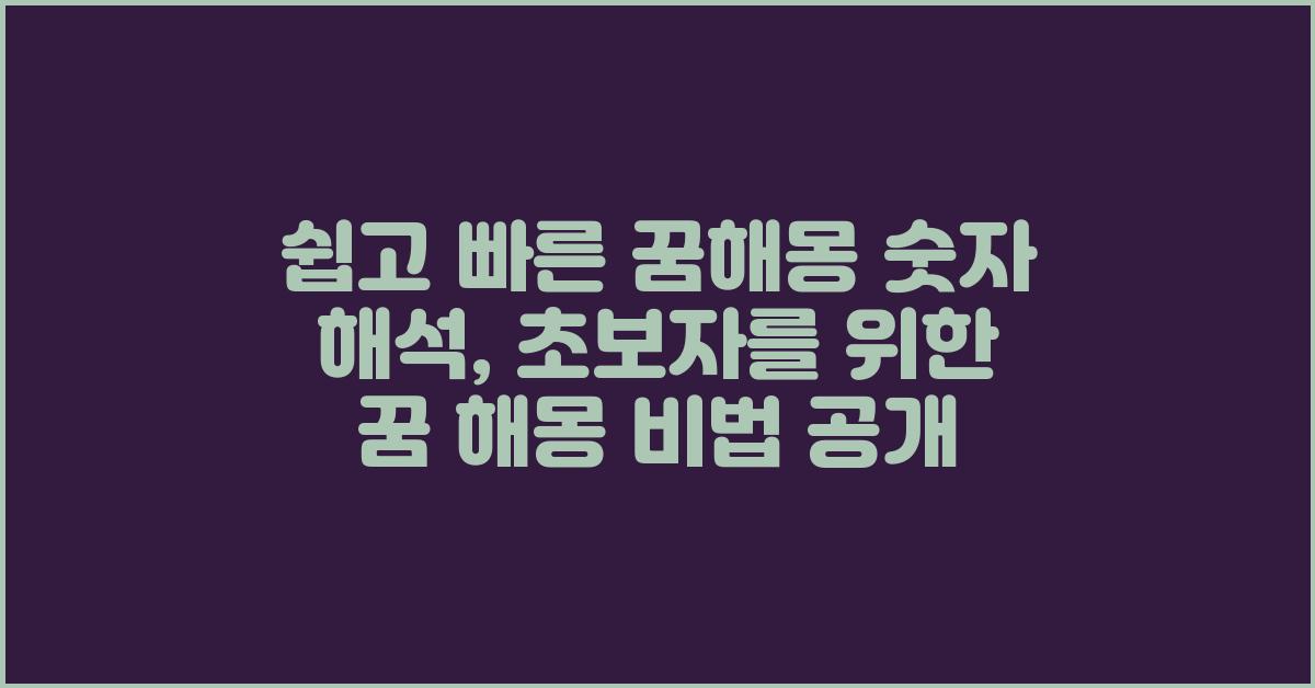 여러분, 안녕하세요! 꿈은 우리의 무의식에서 오는 신비로운 메시지예요. 혹시 꿈에서 어떤 강렬한 숫자가 떠올랐거나 특히 기분이 좋았던 장면이 있나요? 그런 꿈을 해석하는 방법, 그리고 그 숫자들이 의미하는 바를 당신과 나누고 싶어요. 쉽고 빠른 꿈해몽 숫자 해석: 초보자를 위한 꿈 해몽 가이드 | 꿈해몽 꿈풀이 꿈해석 꿈의미는 이번 포스트의 핵심이에요. 특별히 꿈 해몽에 대한 기초지식을 제공해드릴게요!