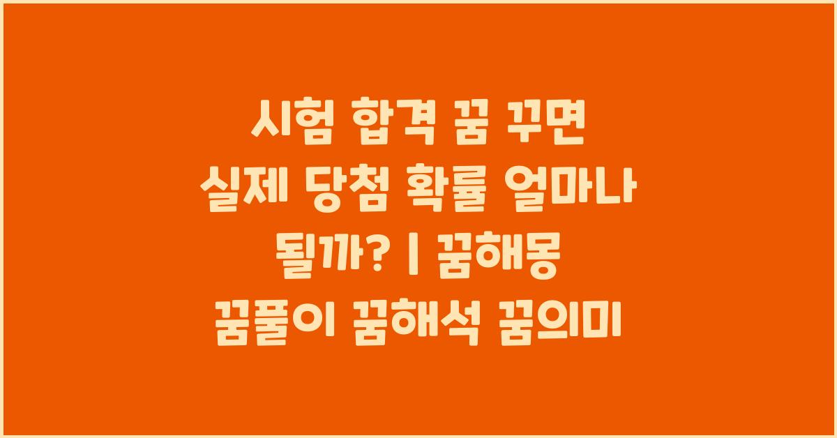 여러분은 시험 합격 꿈을 꾸면서 실제로 합격 확률이 얼마나 될지 궁금하시죠? 이는 꿈의 해석만으로는 정확히 알 수 없습니다. 하지만 일반적으로 꿈에서의 긍정적인 상징은 현실에서도 긍정적인 변화를 이끌어낼 가능성이 높습니다. 예를 들어, 저의 친구는 매일 시험 합격 꿈을 꾸고, 실제로 대학에 합격한 경험이 있습니다. 이는 우연의 일치일까요?