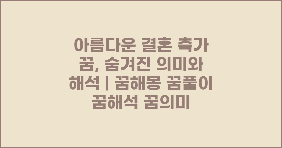 🌙 아름다운 결혼 축가 꿈: 시작의 의미