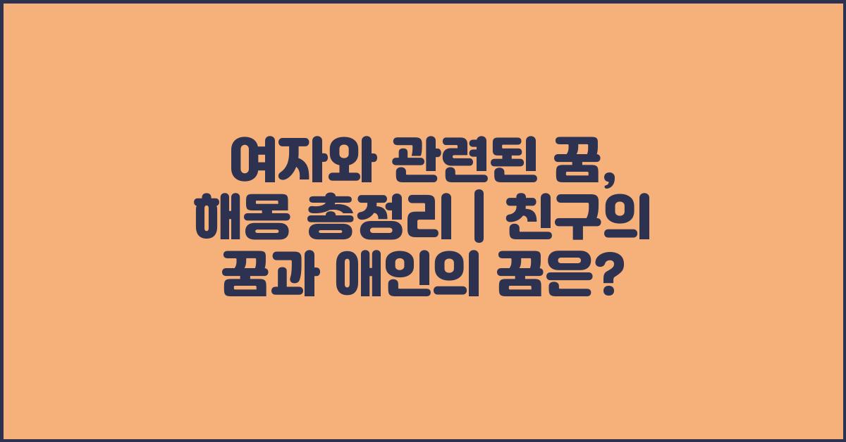 여자와 관련된 꿈은 여러 가지 해몽을 통해 우리의 내면을 들여다볼 수 있는 창이 될 수 있습니다. 꿈은 때때로 우리 심리의 반영이며, 특히 친구나 애인과의 관계는 꿈 속에서 다양한 형태로 나타납니다. 이번 포스팅에서는 여자와 관련된 꿈, 해몽 총정리 | 꿈해몽 꿈풀이 꿈해석 꿈의미를 다양한 측면에서 탐구하여 여러분이 이해할 수 있도록 돕고자 합니다.