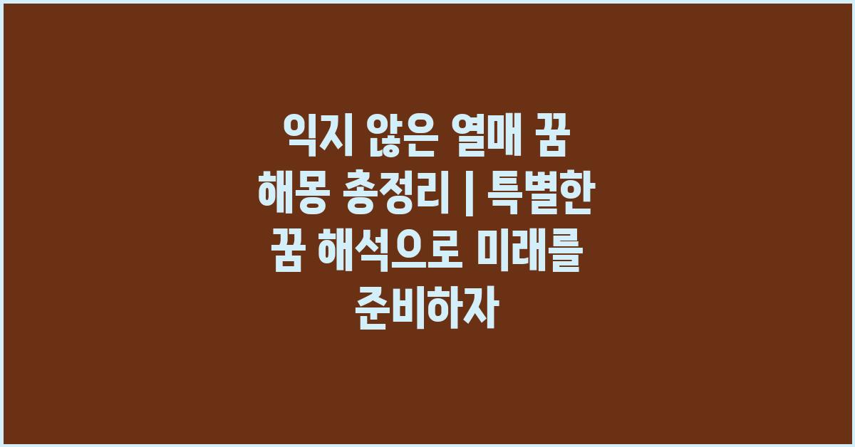 꿈 해몽은 오랜 역사를 지닌 흥미로운 주제입니다. 꿈에서 익지 않은 열매를 보는 것은 어떤 의미일까요? 우리가 풀어야 할 질문이죠. 익지 않은 열매 꿈 해몽 총정리 | 꿈해몽 꿈풀이 꿈해석 꿈의미 를 통해 이 꿈의 다양한 해석을 알아보겠습니다.