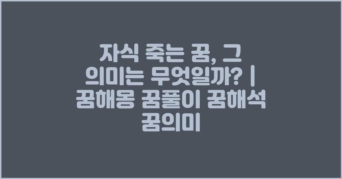 자식 죽는 꿈, 꿈은 꿈일 뿐일까요? | 꿈해몽 꿈풀이 꿈해석 꿈의미에 대한 터무니없는 해석이 아닌 진정한 자기 이해의 시간이 되기를 바랍니다. 우리 모두 다양한 감정을 가지고 있으며, 그 감정을 솔직하게 표현하고 이해하는 것에서 성장의 기회가 있음을 기억하세요. 🎈