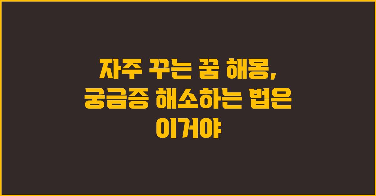 꿈은 우리의 무의식이 드러나는 특별한 세상입니다. 자주 꾸는 꿈 해몽, 궁금증 해소 | 꿈해몽 꿈풀이 꿈해석 꿈의미는 많은 사람들에게 남다른 의미를 가집니다. 꿈의 세계에 발을 들여놓으면, 마음속 깊은 상처나 열망이 드러나는 것을 느낄 수 있습니다. 이 글에서는 자주 꾸는 꿈의 의미를 탐구하고, 그에 관련된 궁금증을 해결하는 방법에 대해 소개하겠습니다.
