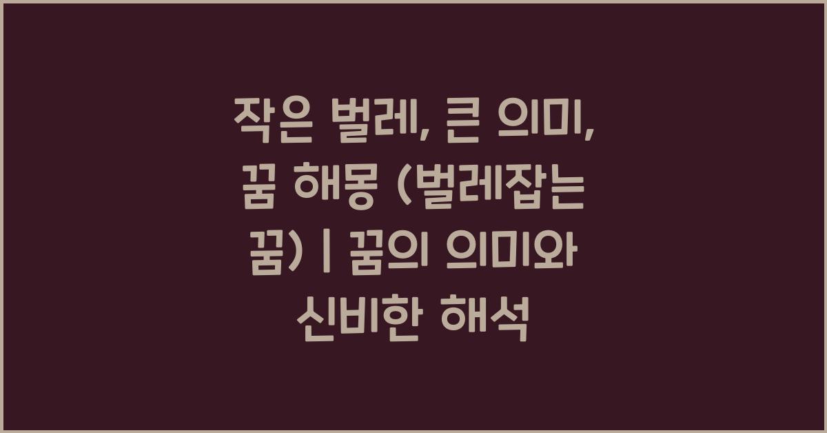 우리가 일상에서 마주치는 작은 벌레들은 대개 그냥 지나치기 쉬운 존재입니다. 하지만 꿈에서의 벌레들은 그 의미와 상징성이 결코 가볍지 않습니다. 꿈 해몽에서는 벌레를 통해 우리가 스스로 인지하지 못하는 감정이나 심리적 상태를 읽어낼 수 있습니다. 특히 벌레잡는 꿈은 그 무엇보다도 개인의 내면과 깊은 연관이 있습니다. 이 꿈 속에서 작은 벌레들이 나타내는 큰 의미는 무엇일까요?