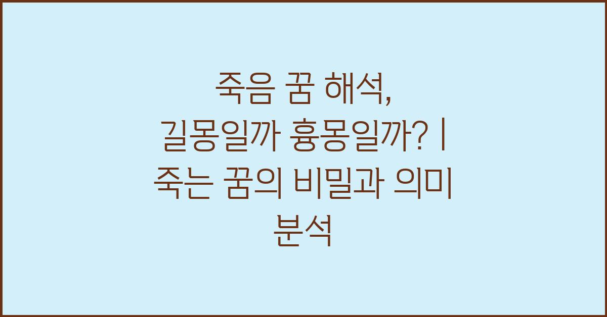 💡 죽음 꿈 해석: 길몽일까 흉몽일까? 나의 생각