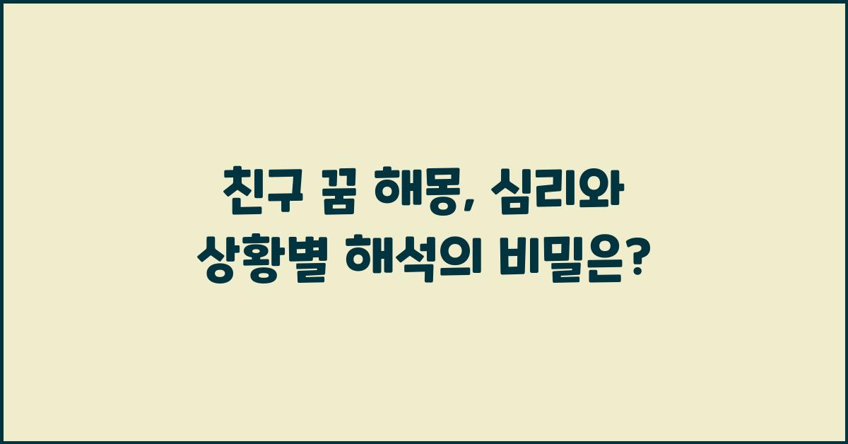 결국, 친구 꿈 해몽: 상황별 해석과 심리 분석 | 꿈해몽 꿈풀이 꿈해석 꿈의미를 통해 우리는 자신의 감정을 더 깊이 이해하고, 관계를 개선해나갈 수 있는 단서를 찾을 수 있습니다. 친구가 꿈에 등장했을 때, 그 의미를 살펴보며 스스로를 탐구해보는 시간을 가져보세요.