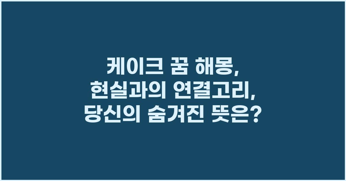 이러한 질문들을 생각하며, 자신만의 케이크 꿈 해몽: 현실과의 연결고리 | 꿈해몽 꿈풀이 꿈해석 꿈의미를 찾아보세요. 여러분의 감정과 경험이 담긴 귀중한 해석을 발견할 수 있을 것입니다!