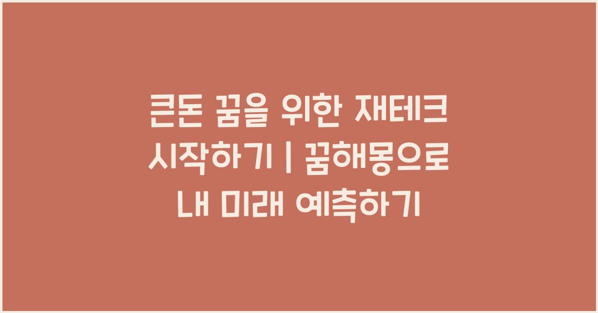 재테크의 시작은 간단하지만, 꾸준한 노력이 필요합니다. 큰돈 꿈을 이루기 위한 방법은 여러 가지이며, 그 중에서도 꿈해몽을 통해 예측하고 자산을 계획하는 것이 중요한 열쇠가 될 수 있습니다. 여러분도 이 여정을 함께 해보길 바랍니다!
