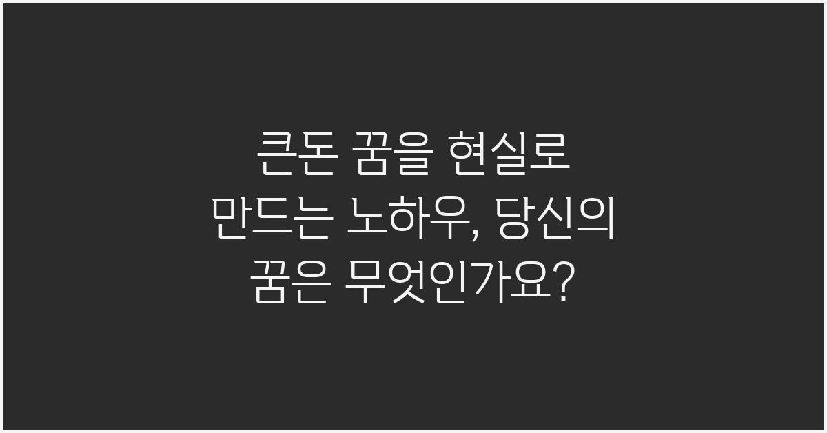 Q1: 큰돈 꿈을 현실로 만드는 노하우는 무엇인가요?