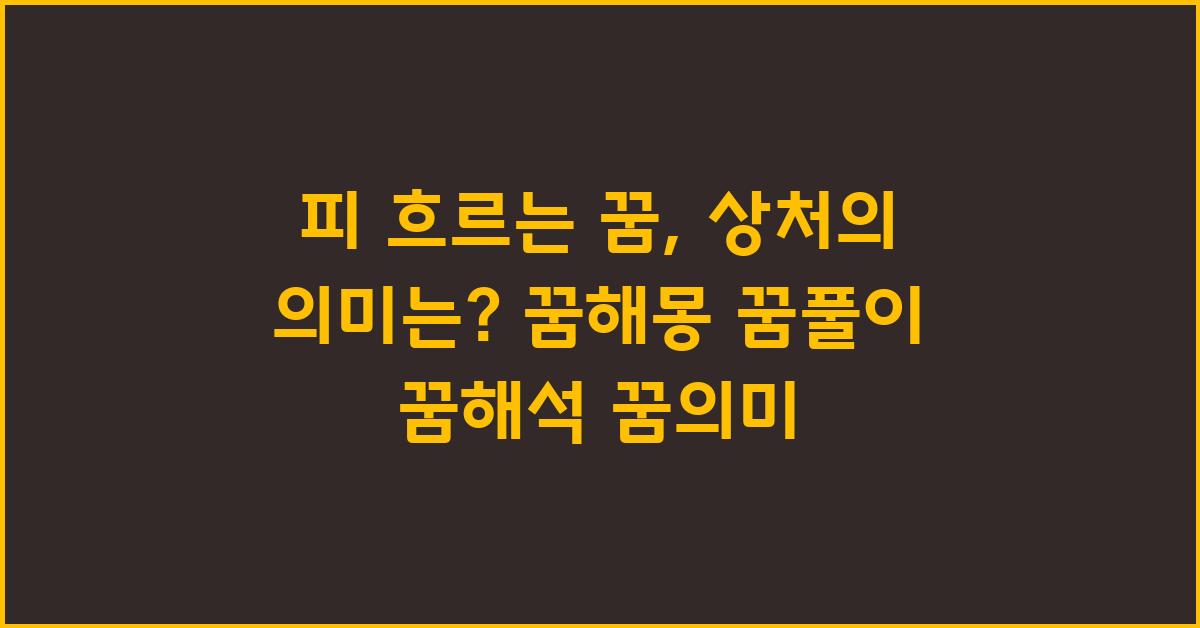 그렇다면 피 흐르는 꿈, 날카로운 것에 베인 상처 | 꿈해몽 꿈풀이 꿈해석 꿈의미를 개인적으로 어땠는지를 돌아보면, 필자는 청소년 시절 한 번 이러한 꿈을 꾸었던 기억이 납니다. 꿈속에서 날카로운 유리 조각에 베여 피가 나는 상황은, 내 인생의 아픔을 직면하는 상징으로 해석되었죠. 꿈을 꾼 뒤, 내가 최근에 느꼈던 상실감과 두려움이 이 꿈과 관련이 있다는 걸 느꼈습니다.