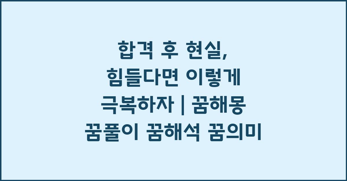 합격 후 현실, 힘들다면 이렇게 극복하자 | 꿈해몽 꿈풀이 꿈해석 꿈의미를 통해 많은 분들이 자신만의 길을 찾아갔으면 합니다. 힘든 상황은 누구에게나 올 수 있으며, 중요한 것은 그 상황에서 어떻게 대처하느냐 입니다. 자신의 감정을 솔직하게 드러내고, 주변의 도움을 받는다면 우리는 더 많은 것을 이겨낼 수 있습니다.
