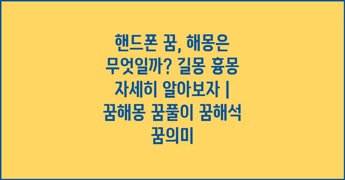 우리가 꿈을 꿀 때, 그 꿈에 어떤 의미가 있는지 궁금해지곤 하죠. 특히나 현대인의 삶에서 핸드폰은 필수 아이템이 되어버린 요즘, 핸드폰 꿈을 꿨다면 더더욱 그 해석이 궁금해질 것입니다. 핸드폰 꿈, 길몽일까 흉몽일까? 자세히 알아보자!는 바로 그런 질문에 대한 답을 찾기 위해 마련된 글입니다. 꿈 속 핸드폰이 상징하는 것은 무엇일까요? 우리의 무의식이 보내는 메시지일 수도 있습니다.