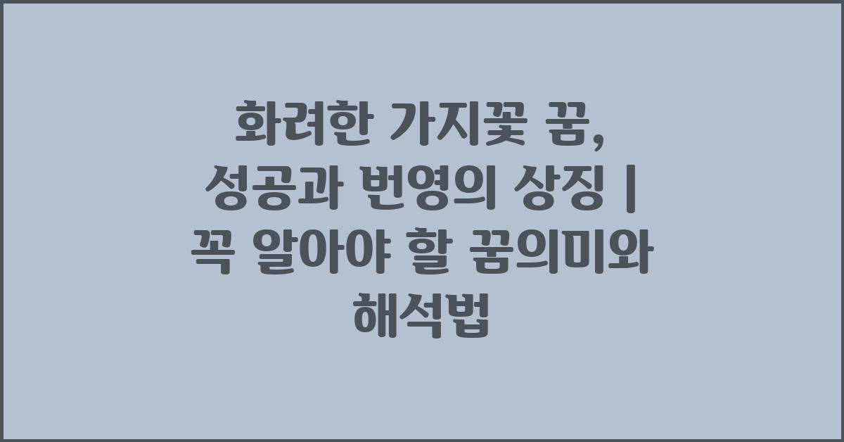 꿈의 의미를 아는 것은 정말 중요합니다. 여러분은 꿈이 단순히 무의식의 반영이라고 생각할 수도 있지만, 때로는 중요한 메시지를 담고 있습니다. 화려한 가지꽃 꿈, 성공과 번영의 상징으로서 그 의미를 알고 있다면, 삶의 조언으로 삼을 수 있죠. 제 경험상, 꿈의 메시지를 잘 받아들이는 것이 중요하다고 생각해요. 여러분도 각자의 꿈이 담고 있는 메시지를 잘 이해하고 있나요?